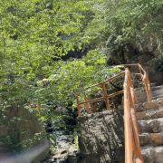 5分 超棒景色宜人,一条小峡谷被边上茂密的树林覆盖。