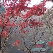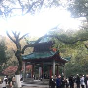 麓山的红叶是以枫香为主,尤其是在爱晚亭附近,到处生长着一人抱不住的枫树,盘根错节,一片连一片。每到深秋,枫叶流丹,红舞秋山,风吹叶动,十分壮观。无怪乎留下了“看万山红遍,层林尽染”的诗句。岳麓山与北京香山、南京栖霞山、苏州天平山等均为中国有名的红叶景区。