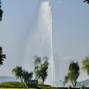 2、百米喷泉由主喷泉和9个副喷泉组成,最高喷到80-100米,甚至在湘江两岸都能看到,水池面积8000㎡。