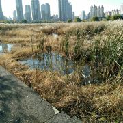 湿地中央有一小亭,登临可览全园景色。放眼望去,芦苇荡波浪起伏,水光潋滟,远处高楼如林,与此处湿地竟形成奇妙对照。城市蚕食自然久矣,而今竟肯留出这一隅,任草木自由生长,任水流自然蜿蜒,倒显出几分难得的宽容。