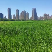 湿地不大,被高楼围拢,远望倒像城市腹地嵌了一块碧玉。入口处立一石碑,刻“群力湿地公园”六字,笔力遒劲,想是名家手笔。游人三三两两,多是邻近居民,扶老携幼,徐徐而行。