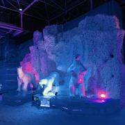 龙马华章区以第30届太阳岛雪博会雪雕作品《华夏神龙》和第37届太阳岛雪博会雪雕作品《八骏踏雪》为蓝本,重现雪雕龙马神韵。该区域的屋顶为星空灯,借助投影技术赋予雪雕新魅力;神龙与骏马的下方,各有一片冰面,灯光巧妙地勾勒出波光粼粼的水面效果,游客穿梭其间,仿佛在水中漫步。
