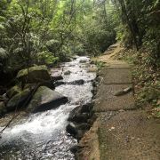 【景色】很一般,上山有两条路,一条山路,一条是麻石楼梯路。山路上山约一个小时左右,沿途有一条小溪和几个小瀑布,算是有一些景点。麻石路就全程没什么看了,一条楼梯直达山顶,三十分钟左右就可以到山顶了。唯一的亮点在山脚的一条河上。