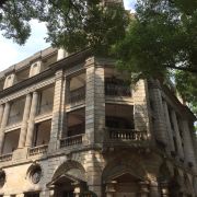 沙面54号的建筑,位于沙面大街与沙面四街交界的东北转角处,这里曾经是汇丰银行。在这栋建筑上,你能看到巴洛克风格的塔座、罗马式的多立克双柱,都是非常经典的古典建筑风格。