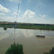 从呼和浩特市区开车1.5小时就到达,能看黄河还有沙漠,景区设施和游玩配套都很成熟,一个融合性的超级公园,一条线路安排的也非常好,可以坐船,坐缆车,坐索道。买的套票C和D,D套票不推荐了,就是多了个卡丁车,建议买有越野车得套票,我们下午2点到达,游玩是不走回头路的,一个项目接着一个项目体验过黄河两种方式,首先就是排队坐缆车从园林区到沙漠区,跨越黄河的缆车。一下缆车就是坐沙漠火车去看马术表演