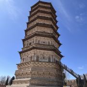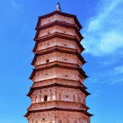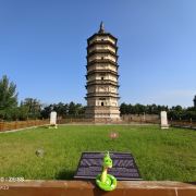 5分 超棒万部华严经塔,俗称“白塔”,位于内蒙古自治区呼和浩特市赛罕区太平庄乡白塔村西南,建于辽圣宗时期。金大定二年(1162年),重修。素有“白塔耸光”的美誉,为呼和浩特的八景之一。万部华严经塔为八角七级砖木结构楼阁式塔,高55.6米。塔的第一层南面有塔门,篆书石刻“万部华严经塔”方额,嵌于塔门的门楣上。1~2层外壁上嵌有大型砖雕佛像与菩萨、天王、力士像等。角柱上盘绕双龙,门楣上有二龙戏珠等雕塑。塔内第一层回廊两侧嵌有金代石碑6件。各层还存有大量历代游人题记,包括汉文、契丹文、女真文、八思巴文、蒙文、藏文等,是宝贵的文字历史资料,对研究北方民族史和地方史具有重要价值。