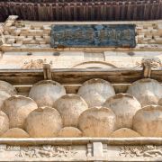 白塔身外侧有精美的砖雕,经塔各层有金、元、明、清各代游人题记,其中有些还墨迹如新,题记除使用汉字外,还有契丹文字、女真文字、蒙古文字、古叙利亚文字及古波斯文字等,是研究该地区历史文化的重要资料。