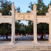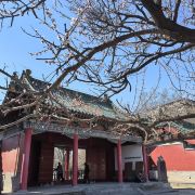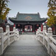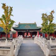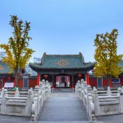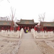郑州文庙始建于东汉明帝永平年间(公元58-75年),当时的文庙共有殿宇廊亭200余间,东西有过街牌坊各一座,乾隆三年曾经大规模修建,光绪二年遭火焚,现仅存清代建筑大成殿和戟门两座古建筑及几间小厢房。