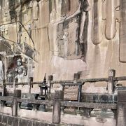 7⃣️七檐佛阁左侧的崖壁上集中标刻有七个年代的洪水标记线和题记。