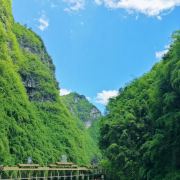 • 鹦哥峡:位于竹板桥前往牛角寨方向1.5千米处,全长500米,因流水声像鹦鹉唱歌得名,两岸翠竹环绕,山高谷深,绝壁连绵。