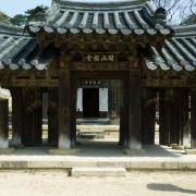通度寺是韩国三大名刹之一,位于葱郁的林中,有大小建筑70余处,文物丰富,风景十分优美。建于公元646年,由从唐朝携回佛祖舍利子的慈藏法师所创建。曾于壬辰倭乱时期焚毁,后于1601年及1641年重建。寺内有35座建筑及法塔寺,周围有14座庵院,此外还有19处地方宝物及794件地方文化遗产。因为安置了佛祖舍利的缘故,虽然没有安置佛像,然而在梵钟阁内却有形形色色的弘鼓、云版、木鱼、梵钟等。此外,还有装饰精巧的大雄殿、不二门和保存了1300年的石造浮雕等共35座建筑物。