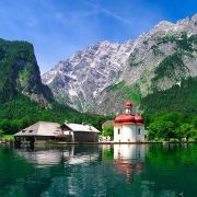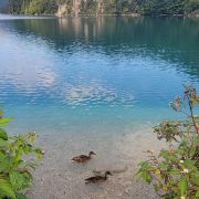 阿尔卑斯湖位于高天鹅堡旁,靠近阿尔卑斯山和奥地利的边境线。阿尔卑斯湖被群山环绕,湖水清澈,空气清新,夏天有很多人在湖中戏水游玩。由于新旧天鹅堡只有在固定的时间段才开放参观,你在等待时不妨走到湖边去休息,很舒服。