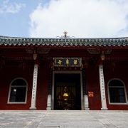 福州市鼓山涌泉寺为“闽刹之冠”,又是全国重点寺庙之一。寺建在海拔455米的鼓山山腰,前为香炉峰,后倚白云峰,有“进山不见寺,进寺不见山”的奇特建筑格局。相传它的旧址为“华严寺”。唐建中四年(783年),有龙居灵源洞(《鼓山志》载:“其先为潭,毒龙居之。”),从事裴胄认为“神物所蟠,宜寺以镇之”,请高僧灵峤入山诛茅设台念《华严经》,遂成华严寺,从此龙不为害。现在,人们都把建中四年(783年)作为涌泉寺创建之始。唐武宗灭佛时,华严寺被毁。908年,闽王王审知修建新寺“国师馆”。915年,改名为鼓山白云峰涌泉禅院。宋朝时,宋真宗赐额“涌泉禅院”。1407年改称涌泉寺。明代该寺曾两次毁于火灾,相继修复、扩建,形成今天的规模。涌泉寺雄伟壮观的要数大雄宝殿了,其他的大小殿宇都簇拥着大雄宝殿,殿内有释迦摩尼的三世像,还有庄严的三圣像。在三圣像前,有一个长桌,因其几经火灾都没有被摧毁而且具有悠久的历史了,所以是殿内的正殿之宝。寺庙里还有很多珍贵的藏书、经文还有其他的一些装饰用品和陶瓷品。寺庙里有很多处重要的题字或者题刻,寺庙内部金碧辉煌、庄严肃穆,让人不敢亵渎佛的伟大。