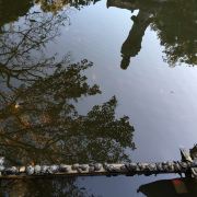 图3:放生池内乌龟排队 - 观音倒影 - 水中鲤鱼;