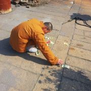 图4:天王殿对面围墙上有 “知恩报恩” 四个石刻大字,有道是:“滴水之恩,当涌泉相报”;