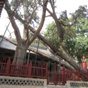 周柏和唐槐都是晋祠千年古木的代表。周柏位于圣母殿北侧,原先本有两株,名为齐年古柏,如今只剩这一株了。周柏距今已有2800多年,树干粗壮,需数人才能合围。在当地人眼中,这株古柏就是长生不老的象征。