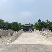 2、奉圣寺原为尉迟敬德别墅,正殿是“大雄宝殿”,能看到院外上午佛塔,寺内石碑廊正在整修。有趣的是屋檐上有只猫爬上去下不来了,好像是寺内管理员养的猫 想帮它下来被管理员拦住了,说要让它长记性。周围有难老泉”(三泉之首,常年水温17℃,后因煤矿开采不能直接饮用了)、“碧池”、“台骀庙”、“公输子祠”、“水母楼”、“西湖”(湖南边的铜钟有900多年历史)、“浮屠院”、“留山园”、“子乔祠”(祭祀王姓祖先王子乔的祠堂)和“三圣祠”等景点。