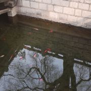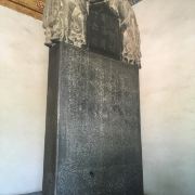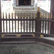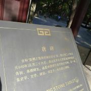 2、晋祠铭碑在圣母殿北侧,是唐太宗李世民于646年亲自书写立的碑,刻有《晋祠铭》,全名《晋祠之铭并序碑》,是我国第一个行书碑文,共28行1203字,碑的四面都刻有文字,正面记录了唐朝立国后的文治武功,并歌颂唐初的治国方略,背面刻有长孙无忌等功臣的姓名。全篇有39个“之”字,12个“不”字,都各有各的姿态,绝不雷同,可见唐太宗对王羲之书法用功之深,但因历史悠久,少许文字遗失了。南边“盛瀛楼”门前有仿制唐碑,可以近距离看碑文。唐碑周围有“周柏”(晋祠三绝之一,3000年树龄的柏树斜倒,被自己子孙树,1000岁的“撑天柏”扶住,寓意“老有所依” ,因此成为全家游必拍合照的地方)、“苗裔堂”(供奉送子娘娘)、“唐叔虞祠”(晋祠主人晋王的祠堂,为表孝道被后人搬出圣母殿另建此殿;两排“元代乐伎塑像”制作精美,大院里碑廊里存有众多古代文人的游记,都是重要文物)、“三台阁”(在最西边高处,人迹稀少,锁着门)、“善利泉”(水量微小,排在三泉之末)、“云陶洞”(不开放)、“八角莲亭”(开着莲花的小池,有夜猫在附近讨食)、“唐碑亭”(亭中有李世民立的碑《晋祠铭》,是重量级文物)、“文昌宫”(不开放)、“东岳祠”(不开放)和“关帝庙”(主庙正在维修不开放,正对着庙外的“钧天乐台”是民众向关公献戏用的舞台。主庙背后的“三清洞”可进去祭拜,供奉道教的三尊。二楼的“玉皇阁”不开放)等景观。