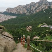 槎山风景区九顶连绵,危峰兀立,巍峨峻拔,山海相映,雄伟壮观,自古便有“大东胜境”之称。九龙池、延寿宫皆为山中胜景。槎山是道教的重要发祥地。据史书记载:金代大定年间,玉阳拜王重阳为师,云光洞内演习道法,创立了全真教昆山派后,迁往槎山风景区清凉顶,在其北一座石壁上开凿了千真洞,继续修炼道法,所留遗迹甚多。