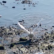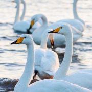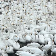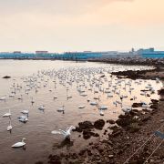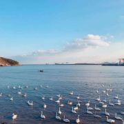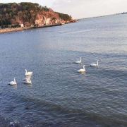 旧事如梦沧海桑田,现如今村南的花斑石滩船来船往碧波荡漾,海湾的东西各有一条清澈的小溪,将干净的淡水源源不断地汇入大海。每年十一月至来年三月间,总有数千只野生大天鹅从遥远的西伯利亚飞到这里越冬。人与天鹅和谐相处,海滩也由此多了一道亮丽的风景线,为美丽的海湾平添了无限生机。由于人们自觉的爱鸟护鸟,天鹅也与村民建立了浓厚的感情。人鸟共处的和谐家园,吸引了专业摄影人和业余摄影发烧友纷至沓来。