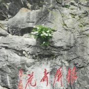 银屏牡丹花,生长在一堵巨大的犹如斧削、光滑如屏的悬崖峭壁之上,为一株野生白牡丹花,风姿绰约,殊为举世罕见。