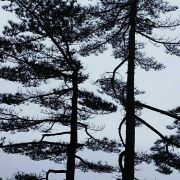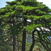 麒麟松生于北海至清凉台路边海拔1470米处,是黄山十大名松之一。其胸径50厘米,在树高1.5米处分作两干,分别朝东西方向斜展生长,高低错落。高枝如麟角,低枝似麟尾,主干树皮如麟甲斑斑,酷似麒麟之态,故而得名。