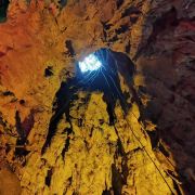 紫微洞位于巢湖北郊,又名紫薇洞、双井洞,因洞有大小两个天然井状出口而得名。这是一个典型的喀斯特溶洞,地下暗河在洞中蜿蜒流淌,有各种钟乳石可看,虽然比不上桂林等地溶洞的奇幻美妙,但合肥、巢湖周边溶洞不多,物以稀为贵,这里在当地还是比较有名气的。