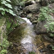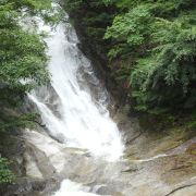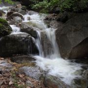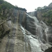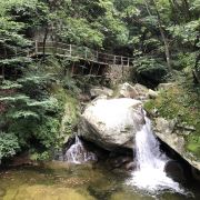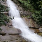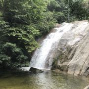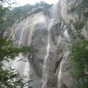 九撞沟三叠瀑:站瀑布下方岩石侧拍,水流如绸缎