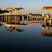 石家庄水上公园是石家庄市民心河沿岸22个公园之一,石家庄水上公园也是民心河的一个重要组成部分,石家庄水上公园的水域面积占石家庄水上公园面积的三分之一。石家庄水上公园湖岸四周栽满垂柳,河水清澈,景色秀美;石家庄水上公园设计独特,寓知识于休闲之中,寓文化于娱乐之中,石家庄水上公园其园林建筑有中国、石家庄水上公园甚至是世界之的建筑艺术、园林艺术、雕塑艺术精品。石家庄水上公园其中有按比例修建的世界的赵州桥及震海吼、石家庄水上公园具有承德避暑山庄特色的烟雨楼、石家庄水上公园具有现代艺术风格的飞鸿九曲桥、奇趣廊以及河北民居、名人景墙等。