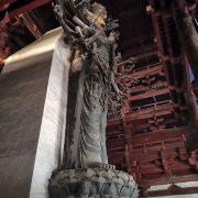 据寺内一通宋碑记载,这尊菩萨像的铸造程序十分复杂:先铸好基础,然后分七节铸造大菩萨。第一节铸下部莲花座,第二节铸至膝盖,第三节铸至脐下,第四节铸至胸部,第五节铸至腋下,第六节铸至肩膊,第七节铸至头部。最后添铸四十二臂。菩萨的手均为木雕而成,其上裹布,一重漆,一重布,然后用金箔贴成。