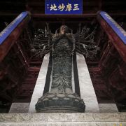 5分 超棒在正定古城隆兴寺大悲阁内,有一尊高达19.2米的“大悲菩萨”,这尊铜铸观音菩萨像是中国保存最好、最高大的观音像之一。这尊菩萨像立于2.2米高的须弥石台上,周身有42臂,又称“千手千眼观音”。各臂分别持有日月、净瓶、宝塔、金刚、宝剑等法器。可惜的是,部分铜手臂被毁,后来改为木制,仅前胸两臂为原铸。观音像神态自若,比例均匀,衣纹流畅,线条细腻,颇具宋代艺术风格。