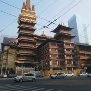 静安寺 华山路南京西路口,大门在南京西路上。静安寺传说为三国孙权所建,佛日重辉,在进行扩建和改建,山门和钟楼、鼓楼、观音殿等已建成,大雄宝殿正在建造,山门外重建了印度阿育王式石幢。静安寺全天开放,香花券每人10 元。