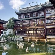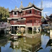 到了城隍庙旅游区就不能不走一下曲曲折折的豫园-九曲桥,看看桥下的鲤鱼和桥边的湖心亭,或拍照或喂食,也是一种乐趣。此桥九曲十八弯,且每个弯曲的角度大小不一,有大于90度直角的,也有小于90度直角的。该桥如今的桥面为花岗石板,每一弯曲处一块石板上均雕刻着一 朵季节性花朵,如正月水仙、二月杏花、三月桃花……直到十二月腊梅;并在桥头尾的两块石板上各雕刻着一朵荷花。在湖心亭茶楼门前的一段桥面,中间雕刻 一朵荷花,四角则分别雕刻彩云。池中汉白玉的荷花仙女雕塑亭亭玉立,含笑迎候来客。 豫园-九曲桥可以通达湖心亭茶楼。