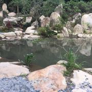 岩石园:依山而建,培养龙胆草、丹参等多种药用植物 。