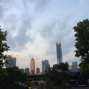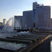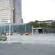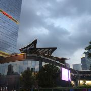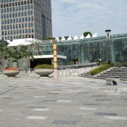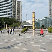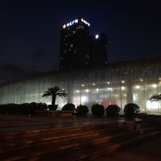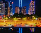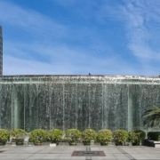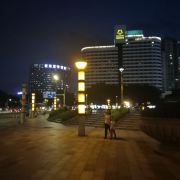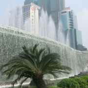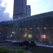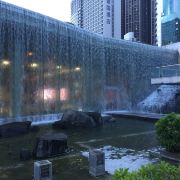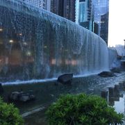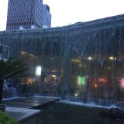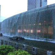 华灯初上时,远近商厦灯火通明,而瀑布所处的玻璃墙也因各色灯光变幻而摇曳多姿,交相呼应的色彩效果不啻一场视觉的盛大享受,位于瀑布前方的外广场,是游人以及老少市民咸集于此欣赏瀑布的好地点。