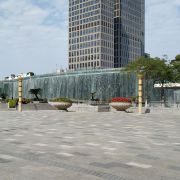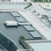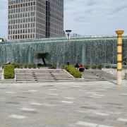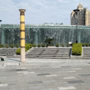作为新羊城八景之一,广州东站广场的水景瀑布是许多初到广州的游人开门见山便可欣赏到的人造景观。坐拥满眼绿荫之中的瀑布全长89米,高低约8米的落差使激涌而出的水流如银幕般倾泻而下,很是华丽壮观,它与东站绿化广场共同营造出了一个大尺度的环境空间效果,即便是司空见惯的广州市民,也常常对此景观啧啧称赞。