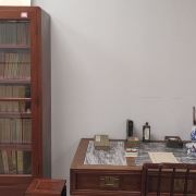 整个现代文学馆共有ABC三个展馆,目前只开放C馆。C馆有两个展区,进门右手侧是现代作家书房展,真实复原了部分作家的书房全景,比如臧克家、艾青、冰心等等。值得一提的是,所有展示区的物品都是作家曾经使用过的真品。一桌一椅一茶几,一人一书一世界。