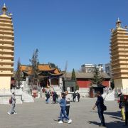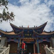 昆明少林寺位于昆明市官渡区官渡古镇中心,以金刚塔为核心,由妙湛寺古建群、法定寺古建群、土主庙古建群、观音寺群建群、金刚塔周边的文化广场以及妙湛寺古建群北面、西面待建的禅堂、讲经堂、念佛堂、演武厅、博物馆和位于官渡镇内的昆明少林文化国际学院(原先锋中学)组成。