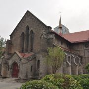 3分 不错教堂不大,但建造了10年于1903年才正式落成。1935年,教堂经历过一场重大火灾,礼拜堂受损严重。1936年6月重建。安里甘教堂建筑面积约1200平方米,为单层(局部设有夹层)混合结构建筑,设有一层地下室。多坡屋顶牛舌瓦屋面,空中看屋顶呈十字架状,中部设有尖顶塔楼。建筑平面布局为集中式,室内空间开敞,装饰简洁大气。外檐为青砖清水墙面,墙面以联排券柱和砖雕花饰作装饰带,门、窗均有多重尖砖券,朴素又不失典雅,具有哥特式建筑风格。因为此教堂是基督教圣公会专门为在津的英国人建造,因此又有“天津的英国教会之称”。