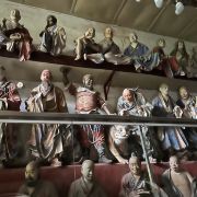 如果以历史之久远,影响之大,香火之盛而论,筇竹寺当为其首。此外,造型优美、驰誉中外的五百罗汉的彩塑就在这里,500罗汉分别陈列在大殿两壁(68尊)、天台莱阁(216尊)、梵音阁(216尊)中,分上中下三层,上下两层多为从像,中间一层多为立像,排列讲究对称。