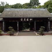 工部祠位于杜甫草堂内,是五重主体建筑的后一重,也是重要的一重。因为杜甫在成都时,曾被严武表荐为检校工部员外郎,所以后人尊称他为杜工部,将纪念他的祠宇称为工部祠。工部祠前有清人何绍基撰写的对联:锦水春风公占却,草堂人日我归来。工部祠内,正中设杜甫神龛,东西两侧分别是南宋诗人陆游和北宋诗人黄庭坚。殿内还存有两通杜甫石刻像,正中是明人何宇度所作,刻于万历三十年(公元1602年),石刻把杜甫刻得体形丰满、气度雍容。另一通是清朝人张骏临摹南熏殿本所刻“诗圣杜拾遗像”。石刻之杜公像面容清癯,目光深沉。把诗人颠沛流离、忧国忧民的满腔愁肠表现无遗。除此之外殿内还有两通杜甫草堂石刻全景图,分别为清乾隆五十年(公元1793年)和清嘉庆十六年(公元1811年)所刻,石刻清楚地勾勒出当时的杜甫草堂风貌。