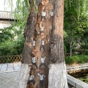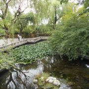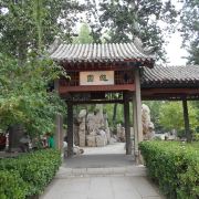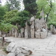 3、逆时针逛,先到被誉为济南第一标准庭院的“遐园”,该园由清光绪年间山东提学使罗正钧于清宣统元年(1909年)建造,并创办“山东省图书馆”(始建于1934年,主楼“奎虚书藏”是藏书阅览室,馆名由民国前教育总长、藏书家傅增湘题写。因1928年日本出兵济南时,战火损毁了图书馆和原藏书楼而复建。馆门口有射箭场“奎虚射圃”)。东侧主门石碑上的园名石刻由罗正钧题写,对联已无存。该园是一所馆、园结合的古典庭园,长廊自东门两侧伸展,园内有石船“明漪舫”、“国学讲堂”(目前是文学公益讲堂,门外几棵参天杨树在湖周边阴柔的垂柳中显得阳刚十足)、赏湖亭“浩然亭”、题刻长廊(嵌有岳飞题写的《前后出师表》,是从南阳“武侯祠”拓印的)、“尼山书院”(始建于清宣统二年,即1910年的“博艺堂”旧址,是图书馆附属建筑,1937年损毁于战火14年复建)、“扇面泉”(开凿于建馆早期,泉池形状像扇子又称“扇面池”,2009年被填埋建绿化带,2010年恢复)。园内假山嶙峋、俊秀别致,吸引了不少俊男靓女拍婚纱照和写真,另外园内有两棵树很奇特,一棵的树干像人的五脏六腑,一棵空心树干中绘有气功图。