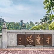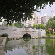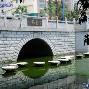 寸金桥坐落在赤坎区西侧,“寸金浩气”是湛江八景之一。1925年遂溪麻章区绅民所建,1959年重修。重修后的寸金桥,为水泥铺面单孔石桥,长19米,宽12米,两侧各立栏柱18根,桥西头竖纪念碑1方。