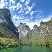 微信小程序河池小三峡又称六甲小三峡,位于一个发电厂内,是一片由峡谷、河流构成的自然风景区。景区沿河展开,以喀斯特地貌为主,到处都是广西典型的秀丽山峰和水中倒影。游客来此可以乘舟漫游、摄影观光,还可以在壮乡村寨感受淳朴民俗等。游玩河池小三峡大多经六甲镇而来,到达景区后乘船游玩是主要的方式,游船全程约2.5小时,配有导游讲解。沿途两岸山清水秀,峡谷悠长,景色既壮观又秀美。到达单程的终点时还会登岸前往壮族村寨参观,后返回原码头。在码头周边还有观景栈道等可以简单的步行游玩。该景区是由天门峡、凉风峡、龙门峡三处峡谷组成,乘坐游船便可一路观赏。天门峡是两座高耸的垂直山峰,壁立于绿水之中,好像是一道巨大的天门一样,十分壮观。凉风峡则清幽无比,周围有倒挂的古藤、钟乳岩等,有清风吹拂,让人神清气爽。龙门峡周围的崖壁起伏,形成天然的“龙头”、“龙尾”等,十分神似。另外,在各峡间还有拇指山、马鞍山、雄狮盼日、金龟探月等独特的秀峰造型,都可以一一参观。船行过河池小三峡之后,两岸便开始开阔起来,这时两侧是平整的田园、宁静的村庄等,一派清新自然的风景。游船到达上游的一座民俗村——梦古寨便会停下来,游客可以上岸活动半小时左右,这里有关于壮族农民生活、民俗简单的展览可以观看,还有很多售卖农家土特产的地方,芋头和板栗等价格不贵,可以简单选购一点。另外,还有当地的村民前来敬酒,不过需要付一点敬酒费(一般10元左右)。游玩梦古寨后,即可乘坐游船启程返回。游船会回到乘船处,这里也是发电厂的坝区。坝区处还有一条460米的观光栈道,沿着悬崖而建,可以步行游览。登至栈道高出,便可以俯瞰水库,观赏、拍摄到“高峡平湖”的壮观景色。