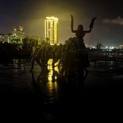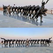 5分 超棒这次来湛江旅行,游览霞山观海长廊时,对海岸边立着的一座由“38个铜人”组成的“人龙舞“标志性雕塑留下了深刻印象。霞山观海长廊,是当地要把湛江建设成区域性中心城市,推进湛江二次创业而实施的环境工程之一,这里免费对市民和游客开放,没有商业气息,没有人山人海。“人龙舞”雕塑,是选用湛江大型表演艺术人龙舞形态,由“38个铜人”搭成长龙雕塑,屹立于海边的观景台上,雕塑形象逼真,表情形态惟妙惟肖,气势宏伟。在观景平台的一旁,即人龙舞雕像的一边,有一牌子,详细介绍了湛江“人龙舞”:人龙舞是湛江地区特有的一项民俗喜庆表演,盛行于雷州半岛一带,至今已有数百年的历史,由于它的独特性和观赏性,呈现出乐观和积极向上的精神和面貌,曾应邀参加2008年北京奥运会开幕式表演,享有盛誉,是湛江一张响的民间文化名片。湛江的“人龙舞”大约始于明末,当年被清军打败了的明军,大概是中秋时节,撤退到了雷州半岛和东海岛,当地的老百姓为鼓舞明军士气,于是,便编排了一个舞蹈,这就是后来的人龙舞。此后,人龙舞在湛江一带流传开来,至清乾嘉时期达到了鼎盛。因为人龙舞在湛江东海岛东山镇东山圩村有“东方一绝”的美称。表演时,几十至数百名青壮年和少年均穿短裤,以人体相接,组成一条“长龙”。在锣鼓震天、号角齐鸣中,“长龙”龙头高昂,龙身翻腾,龙尾劲摆,一如蛟龙出海,排山倒海,势不可挡,显现出独特的海岛色彩和浓厚的乡土气息,是东海岛乃至雷州半岛经久不衰的民间风俗和大型广场娱乐活动的重要组成部分。每逢春节、元宵、中秋佳节和一些重大喜庆节日,东山圩村必连舞几个晚上“人龙”,东西两街户户张灯结彩,家家倾巢而出,人流如潮,热闹非凡。
