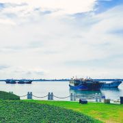 5分 超棒湛江,旧称“广州湾”,别称“港城”。南北走向的湛江湾给湛江市带来了无限生机和美丽的风光。沿着湛江湾西岸的湛江霞山观海长廊,这边城市建设非常好,有栈道,有单车道,虽然海水不算特别蔚蓝,可以看到海鸥在飞翔,远处的军舰在启航,沙滩边的红树林展示着优良的生态环境。在霞山观海长廊对岸是南海舰队基地,军港内战舰排列,威武壮观。正赶上舷号999的大军舰入港,舰桥上红旗飘扬,战舰威武雄壮。经查,这是井冈山号两栖船坞登陆舰,中国海军071型两栖登陆舰的二号舰,曾是中国海军排水量最大的两栖登陆舰。“井冈山”舰可以搭载军用直升机、装甲战车、舰战汽艇和近千名登陆士兵,以及用于成建制输送登陆兵及其武器装备。实施快速、立体、机动登陆作战。“井冈山”舰长210米,宽28米,排水量19000吨。井冈山舰2010年11月18日下水,2011年12月9日正式命名入役,隶属海军南海舰队登陆舰六支队。2014年3月9日从湛江出发参与马来西亚航空公司失联客机的营救工作。我也是第一次见到这么大、且在航行的军舰,来湛江看大军舰,观军港,真棒!