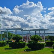 沿着观海中路步行,你可以看到亮相于观海路西侧、隐匿在椰树和绿荫中的别墅群。只要你用心观察,细细品味,造型各异,别具特色;色彩缤纷、争奇斗艳,特别是最近打造的一个长廊小景,似乎将白云托起,正如湛江市把这“迈阿密”别墅群和盘托出、展现给市民和游客一般,何不拿出你的手机、端起你的相机,摆个Poss?这,一定会给你带来异国风情的无限遐想和感受……