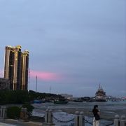 停在观海长廊上的巨型客轮“海上城市”也是一大景观。船长160米,高近20米,站在船顶,海湾美景、城市风光尽收眼底。