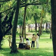 树荫下,放上几段音乐,锻炼、习操、健身;挂一付吊床入卧,刷“抖音”、尚景、闭目养神;摆一张小桌,看书写字、浏览电脑;也可约几个朋友在树下品茶聊天;游客倒是可在享受那一片绿荫带来惬意的同时,尽情观赏、拍摄海湾和对岸的风景。这一幅幅景象,正描写出海滨城市夏日里的那一份恬静和舒适。