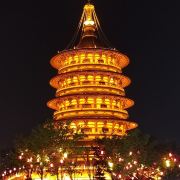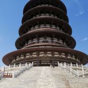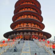 2、通天塔始建于武周载初元年(689年),是武则天的礼佛之塔,又称通天塔、通天浮屠等,原塔高150米左右,曾罩有大佛像,695年还未正式完工时便被薛怀义焚毁。眼下建筑是2013年重建,外观五层内有九层,高88.88米、建筑面积1.3万㎡,气势宏伟,塔内有免费讲解和电梯,塔顶是俯瞰洛阳古建筑的制高点,建议直接坐直梯到九层后再一层层向下游览。每层具体为: